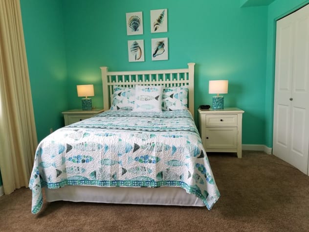 * Guest bedroom with queen size bed, own full bathroom, brand new lvt flooring